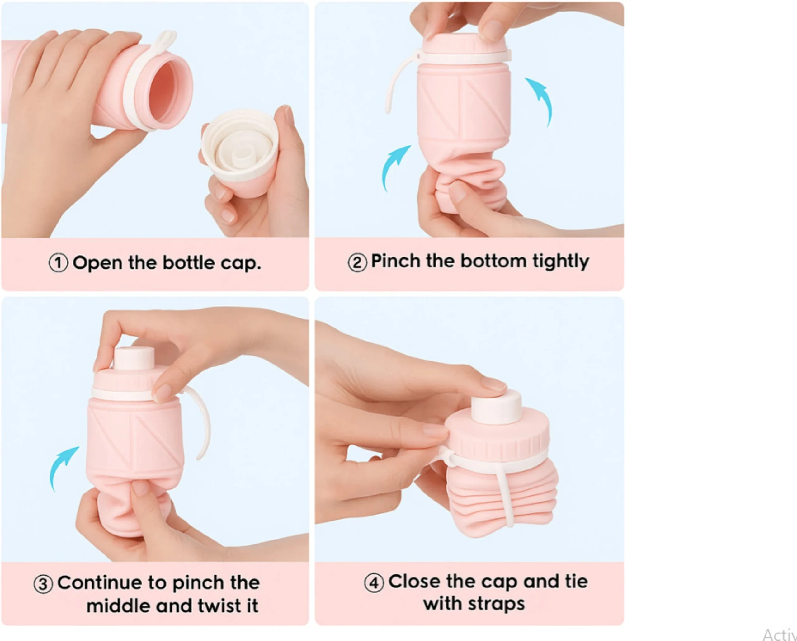 A high-capacity 600ml sports bottle crafted from premium food-grade silicone that rolls up when empty to save maximum space in your gym bag or pocket.