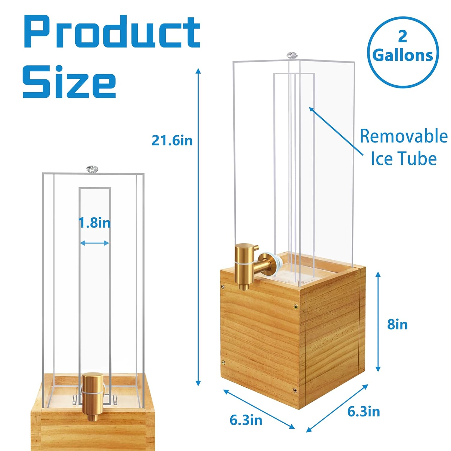 This 2-gallon beverage dispenser with stand is designed for serving cold drinks neatly at parties, gatherings, and home events. It comes with a raised stand that makes dispensing easier and gives it a more presentable table setup. The listing also mentions an individual ice container / ice core, which helps keep beverages chilled without directly watering them down.