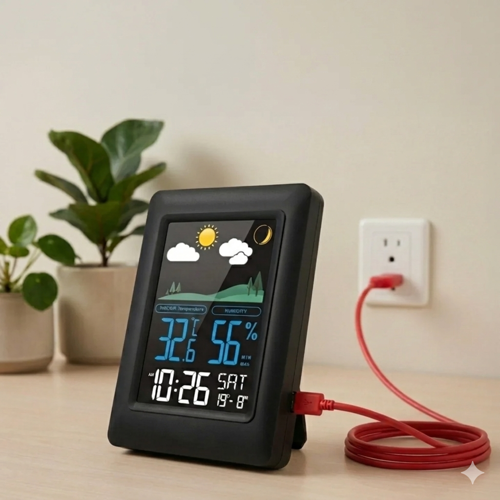 Beyond basic timekeeping, the Meteo offers advanced features like a 4-level weather forecast indicator and a lunar phase display, perfect for those who want a deeper connection with their environment. With flexible dual-power options and a design that can be either wall-mounted or placed on a desk, it combines professional-grade environmental tracking with the convenience of a daily alarm and snooze station.