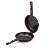 This double-sided omelette flip pan is designed to simplify cooking dishes that need turning, such as omelettes, pancakes, or stuffed flatbreads. The pan consists of two connected halves that close securely, allowing users to flip food without it falling apart or spilling. This design helps maintain shape and improve cooking convenience, especially for thicker recipes.
