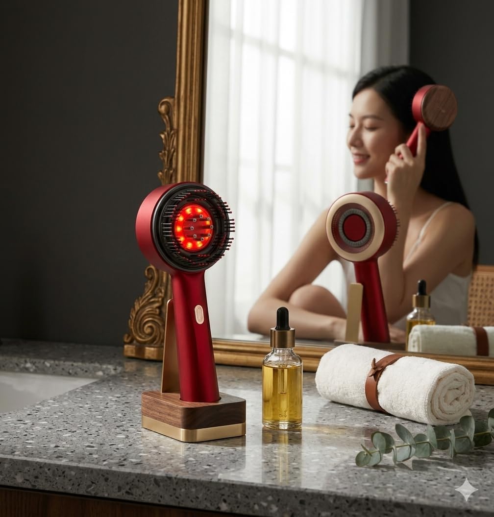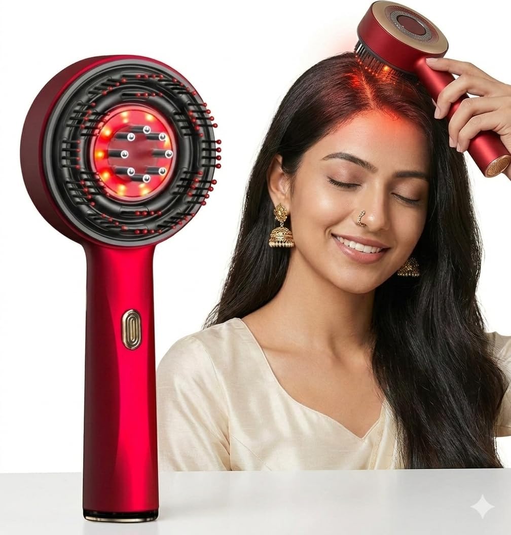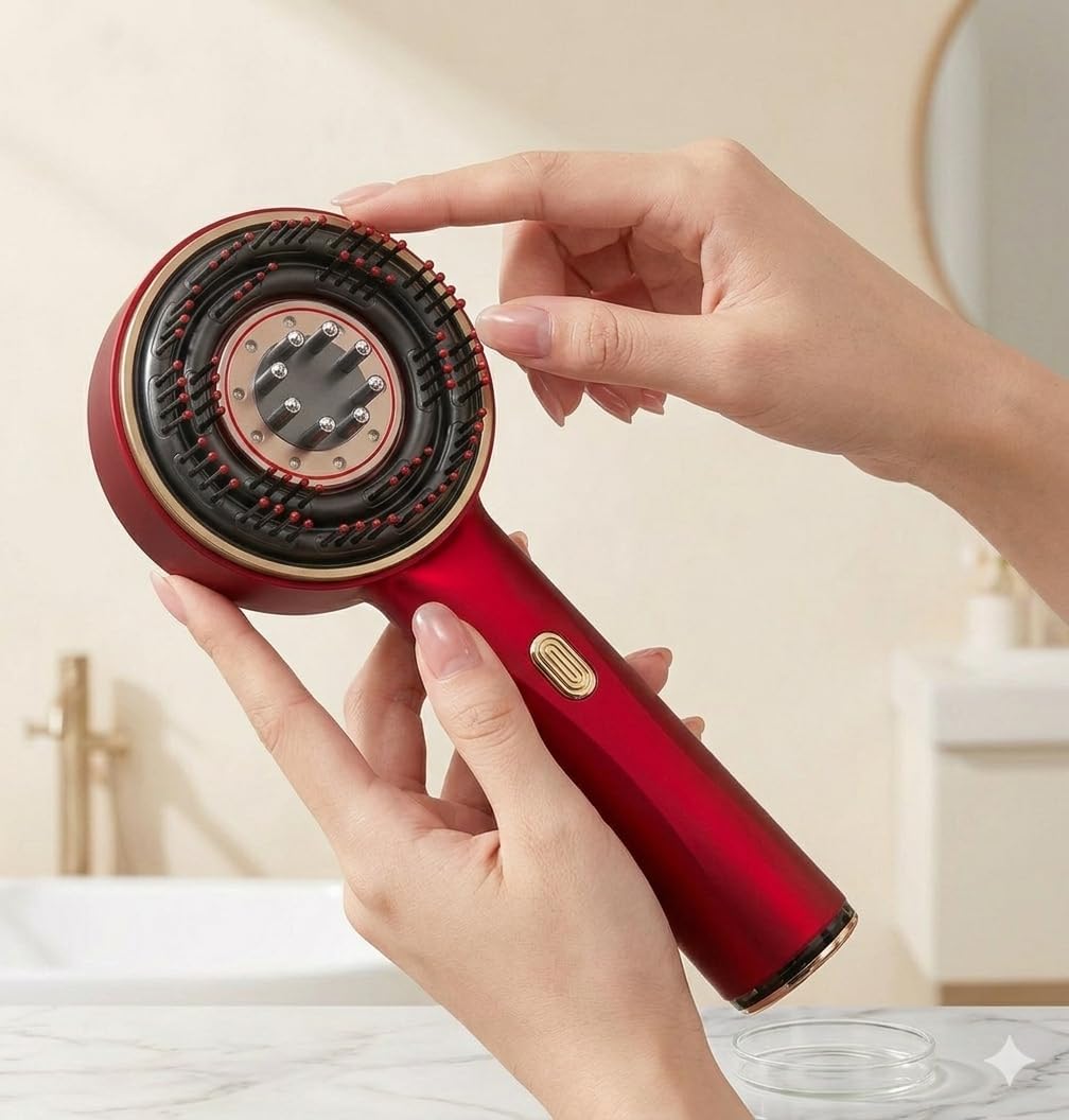 An electric scalp massager comb that applies hair oil evenly while providing vibration massage to relax the scalp and improve comfort during hair care.