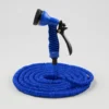 This expandable water hose with spray gun is designed to make watering and cleaning tasks easier at home. The hose automatically expands to a longer length when water pressure is applied and shrinks back after use, which helps save storage space and prevents tangling.