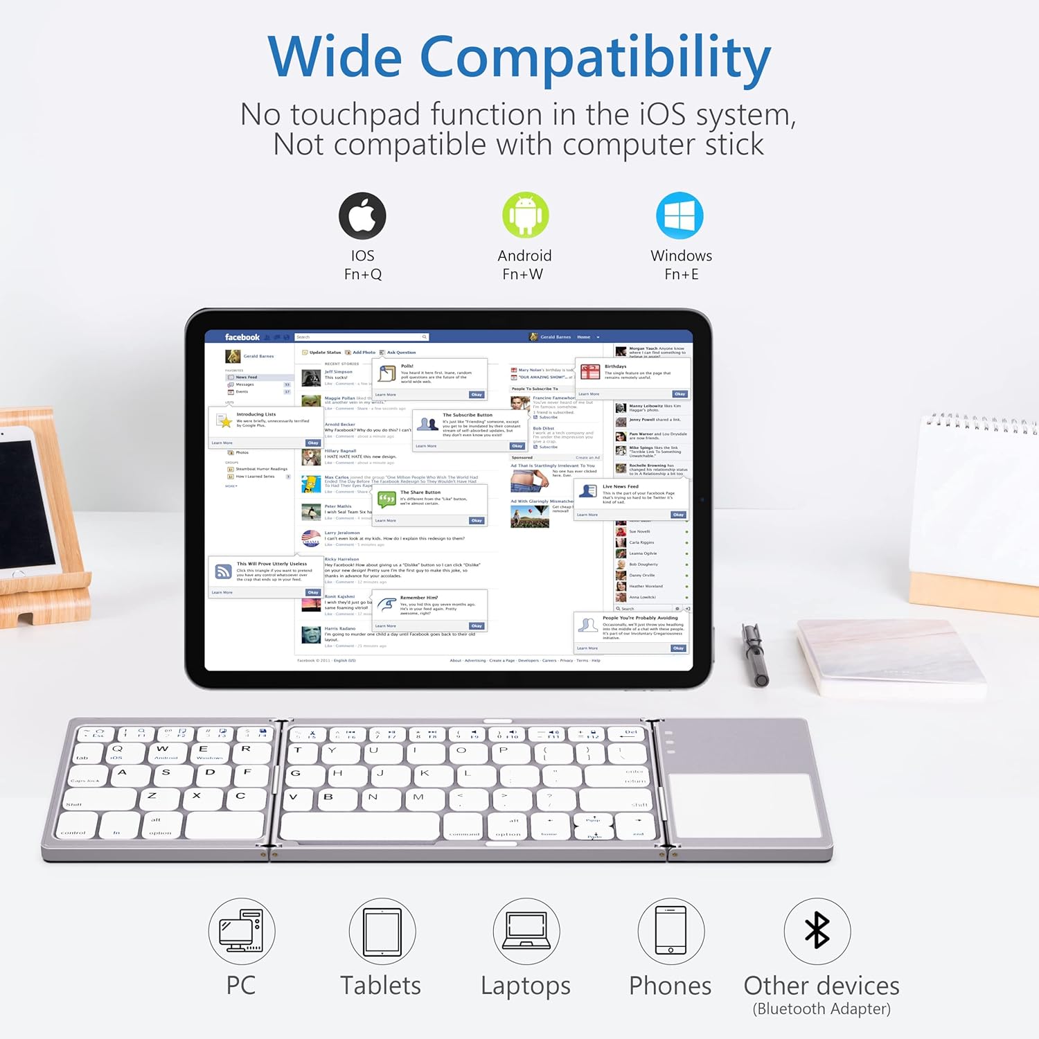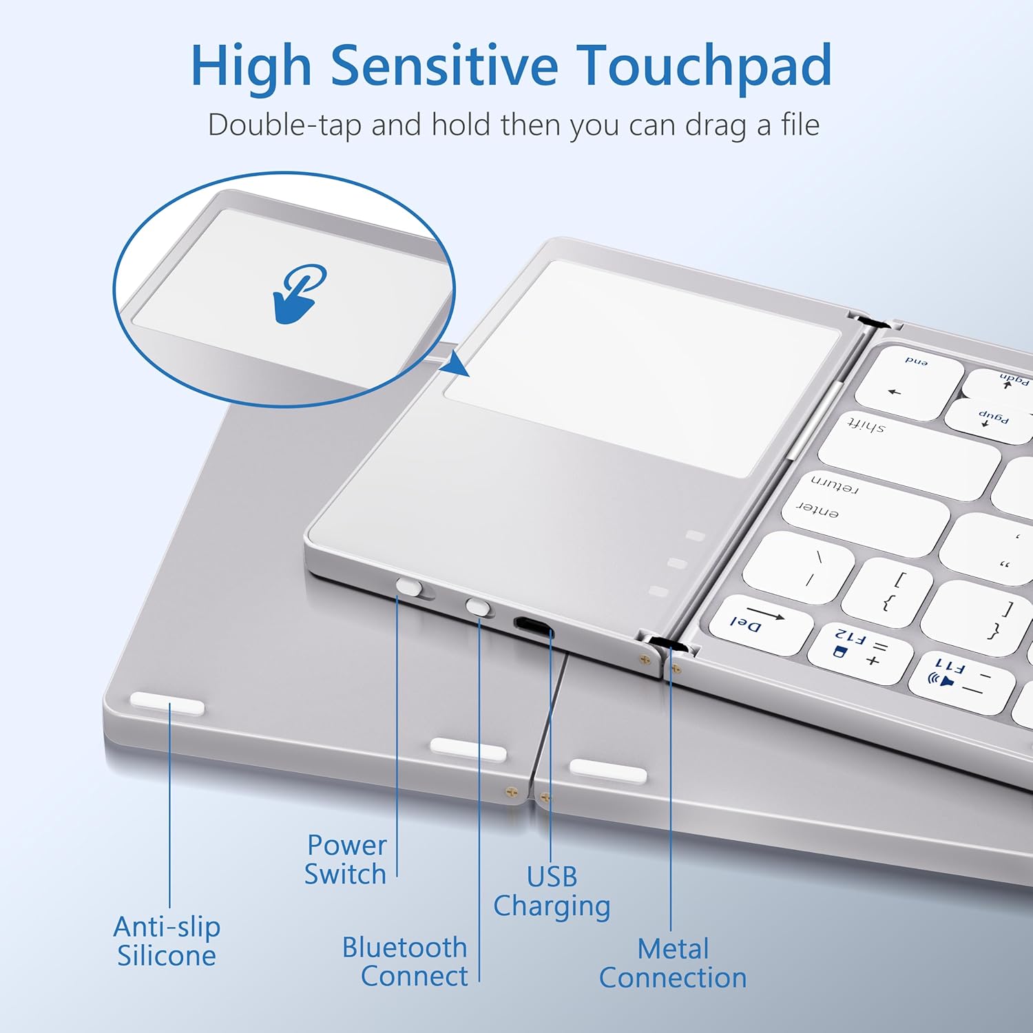 This foldable Bluetooth keyboard is designed for people who need a compact typing setup while traveling or working remotely. Its tri-fold design makes it easy to carry in a bag or even a larger pocket, so it works well for business trips, cafés, classes, and daily commuting.