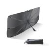 Employs a simple umbrella-style opening mechanism that allows for instant setup and fits securely against the front window.