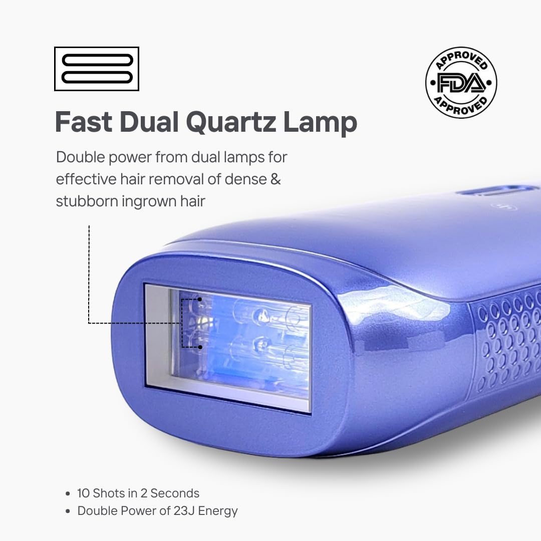 With up to 9,99,999 flashes, the device is designed for long-term use and repeated treatments. The large treatment window and dual lamp system help cover bigger areas quickly, making sessions faster and more convenient.