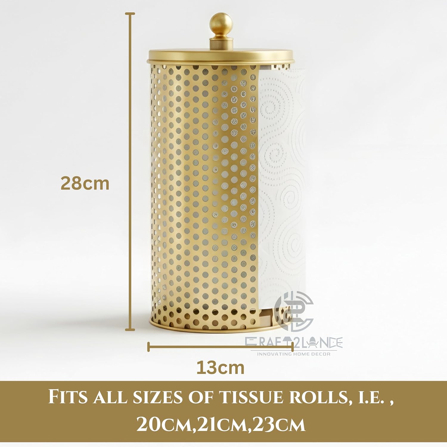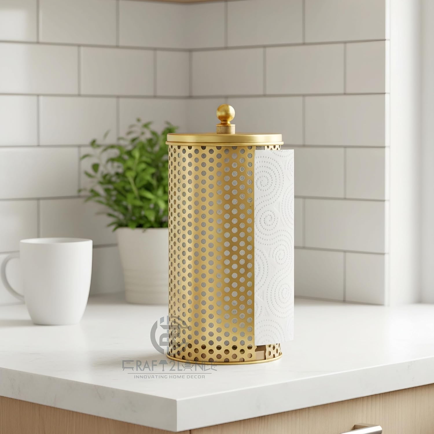 This elegant dispenser transforms a kitchen necessity into a high-end decor piece. The unique honeycomb metal sleeve provides a modern, textured look while ensuring your paper towels remain tidy and dry. Its luxurious brass-tone coating is designed to blend seamlessly with contemporary or farmhouse interiors, adding a touch of gold-plated style to any countertop.