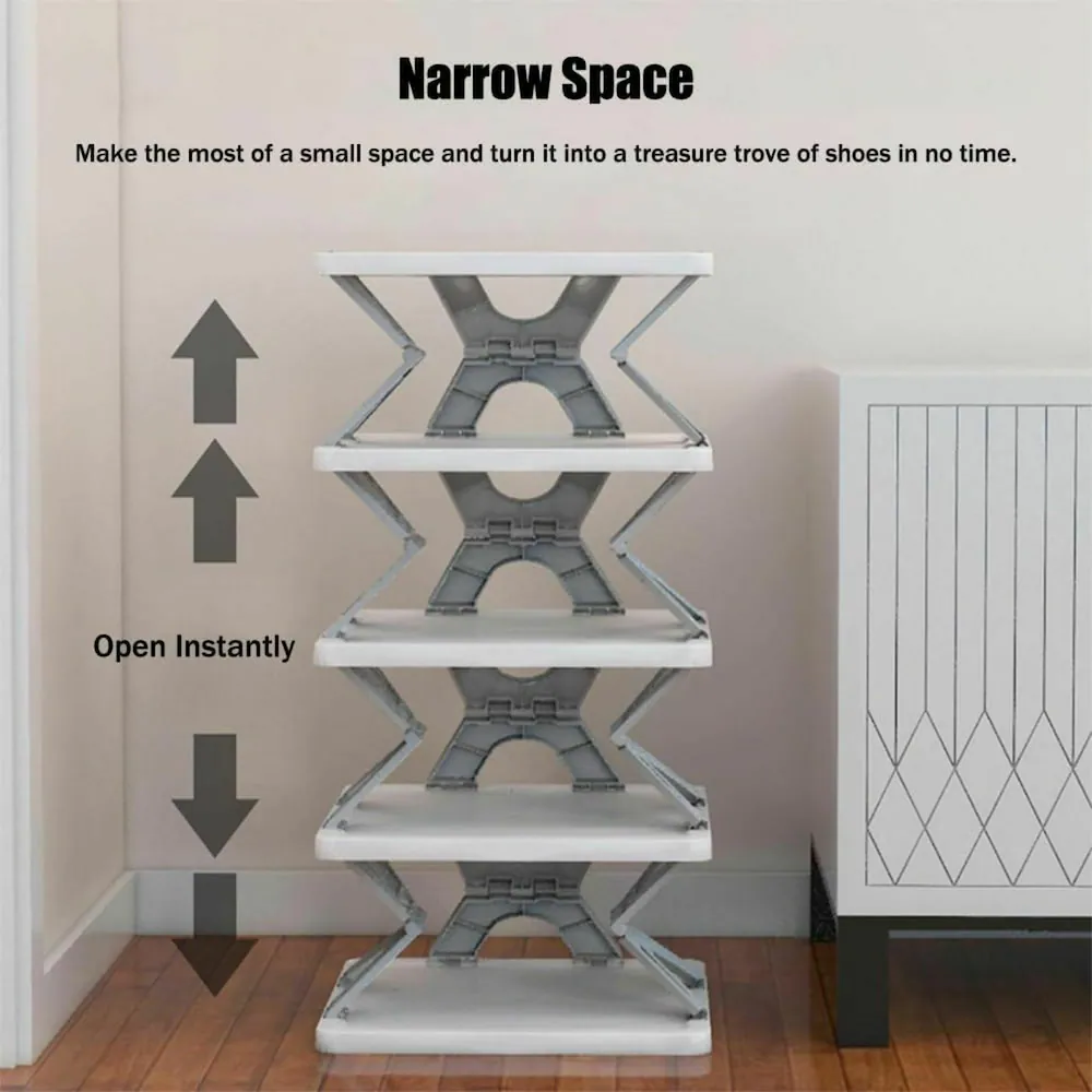 This multi-layer foldable shoe rack is designed to provide organized storage for footwear in homes where space efficiency is important. The vertical structure allows multiple pairs of shoes to be stored in a compact footprint, making it suitable for entryways, bedrooms, balconies, or closets. Foldable shoe racks are commonly used because they are lightweight and easy to move when cleaning or rearranging furniture.