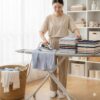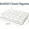 A set of stackable plastic trays designed to organize folded clothes neatly in wardrobes, making storage easier and preventing messy clothing piles.