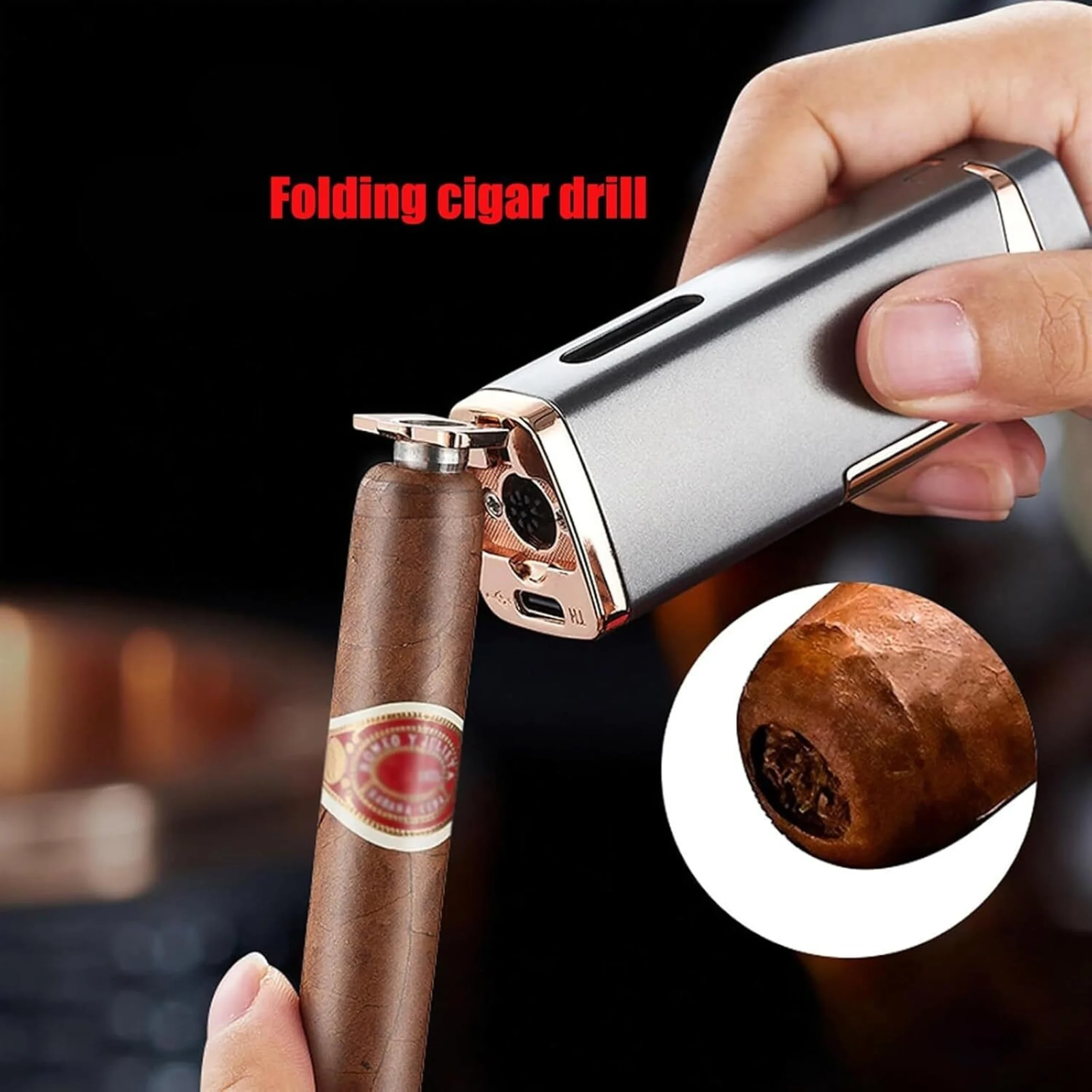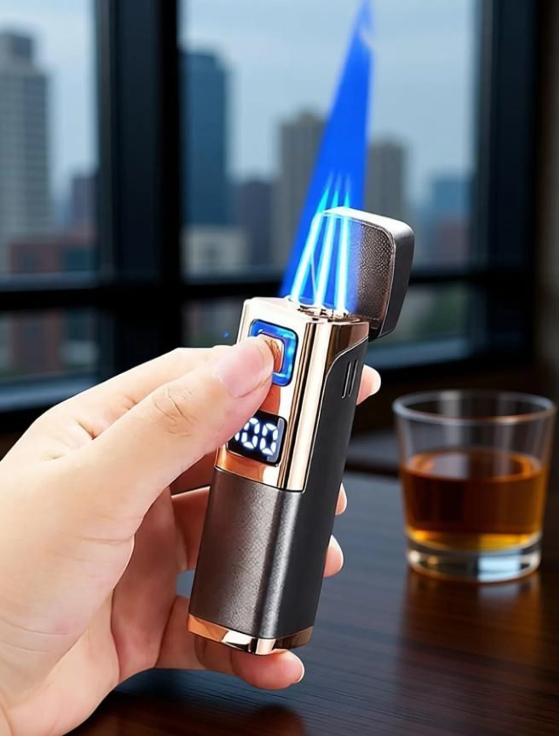 This USB rechargeable triple-flame lighter is designed to provide a reliable ignition source in a compact, portable format. The lighter features a three-flame display mechanism that produces a strong and focused flame, making it suitable for lighting cigarettes, candles, or outdoor equipment. Its metal construction helps improve durability and gives the device a sturdy feel during regular use.